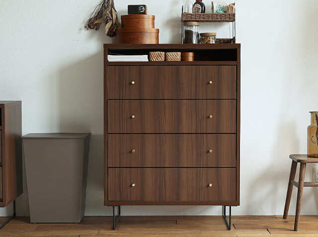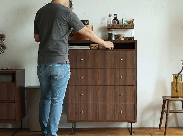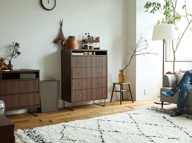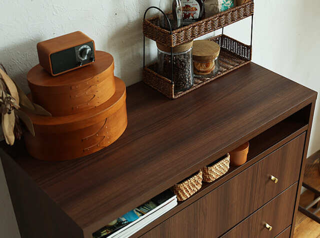雑貨、書類、衣類など様々なものを収納することでスッキリと片付いたお部屋に見せてくれます。また、天板にお気に入りのアイテムのコレクションなどを綺麗にディスプレイして見せることも可能ですよ。