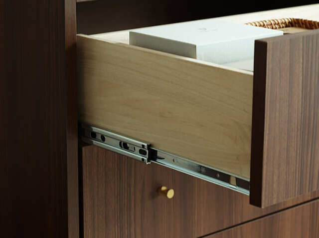 引出し収納は、奥のものまで取り出しやすいフルスライドレールを採用しています。