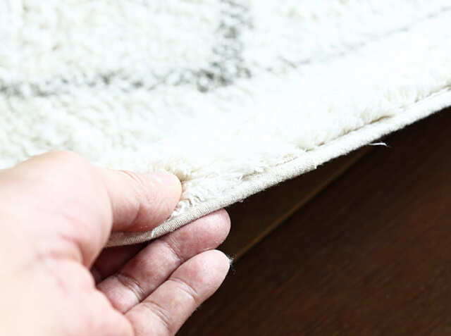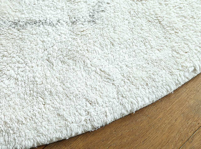 コットン100%の生地は、手で触ってみると、ふかふかとやわらかな手触りが心地良いだけでなく、見た目のカジュアルなデザインを兼ね備えていることがよく分かるラグマット。夏は涼しく、冬は温かな1年を通して活躍するアイテムですよ。