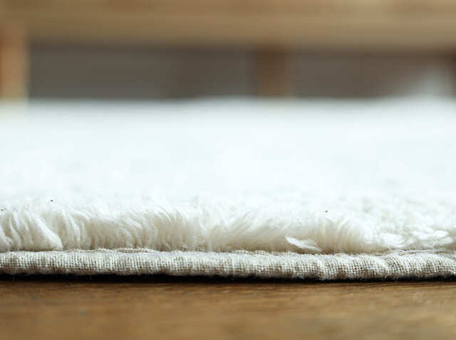 手機(てばた)を使用し、インドの職人の方により、ひとつずつ丁寧に織られたラグは、ひとつひとつから美しさや温かみを感じます。素足で歩くと感じるサラサラ感をお楽しみいただけるラグマットとなっています。