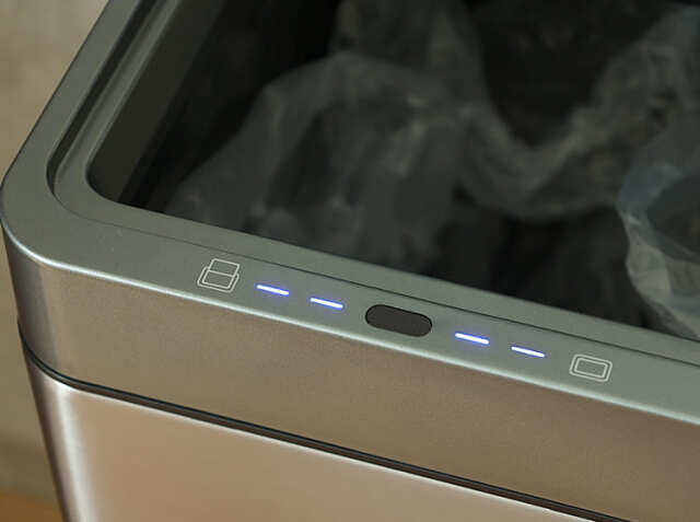 センサーが手または物を感知した時フタは自動で開いて5秒後に閉じます。閉じるまでの時間は点灯したLEDライトが順に消えてゆきカウンドダウンしてくれるんです♪カウンドダウン中に手をかざすとまた5秒間開きにリセットされます。付属のUSB充電でリチウム電池にフル充電すると15,000回(公的機関調べ)の開閉ができます。