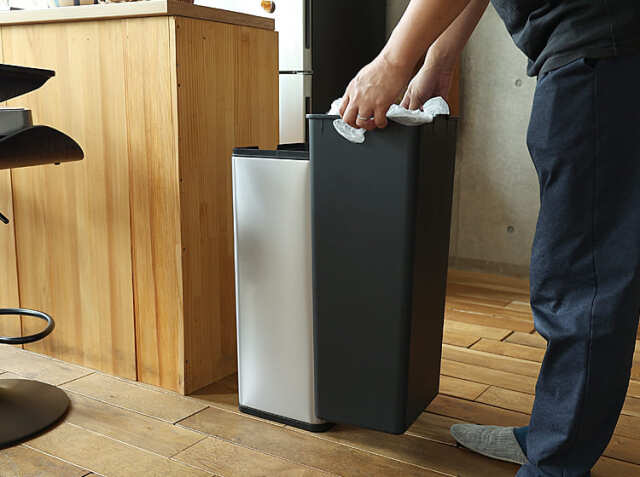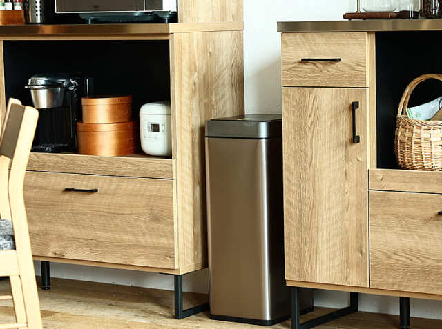 スリムな見た目まがらも容量は30L。スリムなサイズで場所をとりませんので、キッチンの隙間や部屋の隅、デスクの周りに並べて置いてもすっきり収まります。