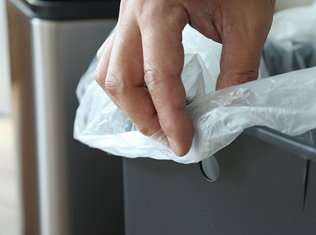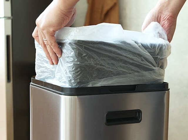 ゴミ袋を掛けるだけでセットが完了します。外から袋が見えないので、生活感を感じさせずインテリアを損ないません。