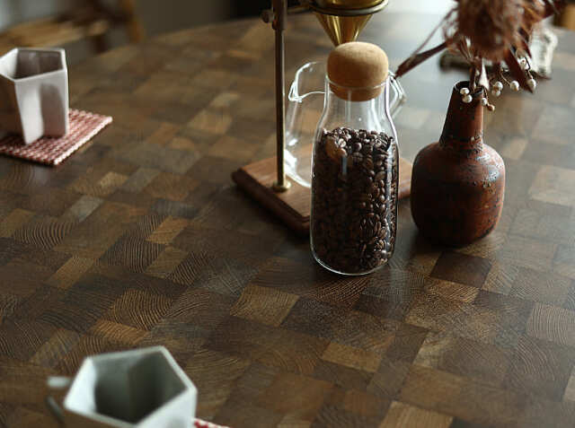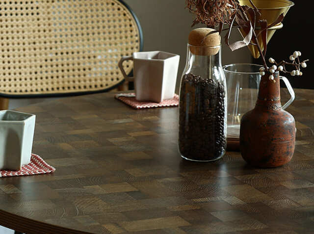天板内部には、耐久性の優れた高密度のMDF構造を採用。無垢材と比べて軽く実用的で、乾燥による反りや割れなどが起こりにくくなりますので、毎日使う中でのメンテナンスもいらなく長くご使用頂けますよ。