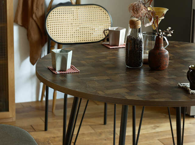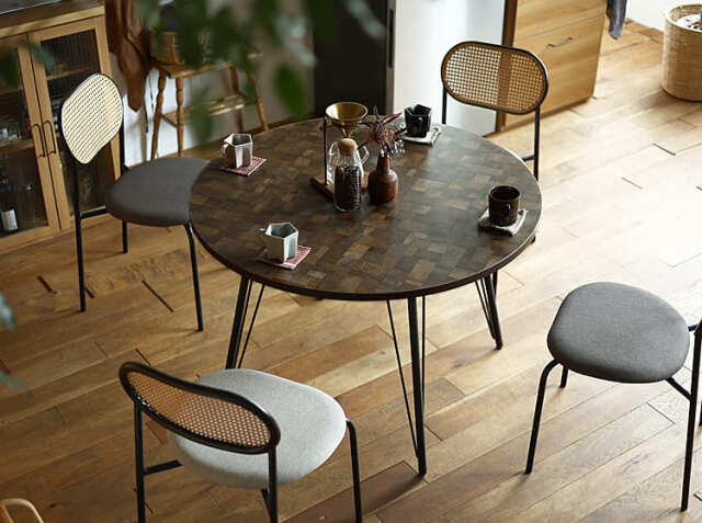 家族やお友だちが集まる食卓。会話をしながら、お食事をしたり、珈琲を飲んだりと楽しく過ごす場所を、天然木の優しい雰囲気が漂う円形のダイニングテーブルで北欧テイストの空間をつくりませんか?