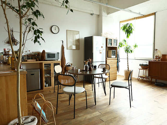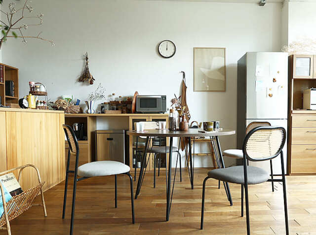 ダイニングテーブルって、お部屋の中心的存在。その中心の家具が丸い形だと、お部屋全体の印象がやさしげで柔らかさを感じさせてくれます。角張った四角いテーブルよりも、角が取れた丸型のダイニングテーブルはふんわりと優しい空間になるところがおすすめです♪