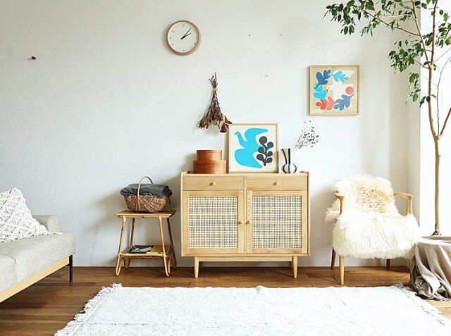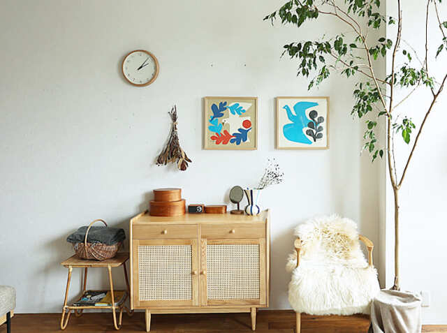 リビングや寝室、ダイニングなどの壁(ウォール)スペースはお部屋の中でも面積が多く、何も飾らなければ意外と無機質ぽくなってしまいます。ナチュラルな天然木のフレームとの組み合わせはお部屋を優しい雰囲気に包み込んでくれますね。