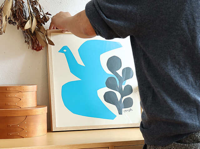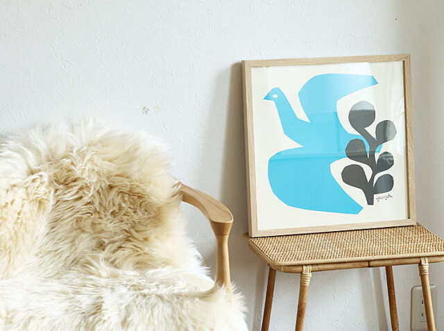 ナチュラルなインテリアにさりげなく映えるアートポスター。こちらの商品は、飾る場所を選ばないサイズ感が嬉しいポイント。