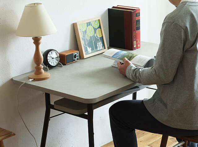 天板の下に収納スペースがあるので仕事に必要なアイテムを置くことができ、天板での作業スペースは広々活用し、下段からスマートフォンや文房具などサッと取り出せるなど、テレワークをもっと快適に、そして仕事がはかどるデスクとしての利用もおすすめですよ。