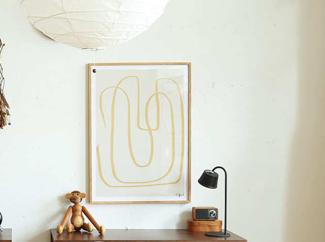 シンプルなアートがお部屋の雰囲気に馴染みつつ、おしゃれな存在感を見せてくれます。 アートポスターは一枚飾るだけでお部屋の表情がガラッと変わりますね。飾る位置によっても印象が違ってきますので、ワクワクしながらお好みの場所に飾ってみてください。