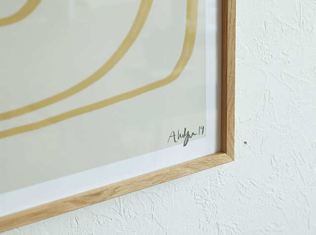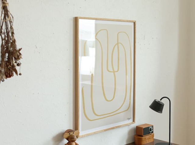 ナチュラルなインテリアにさりげなく映えるアートポスター。こちらの商品は、飾る場所を選ばないサイズ感が嬉しいポイント。