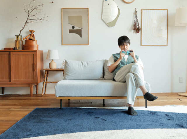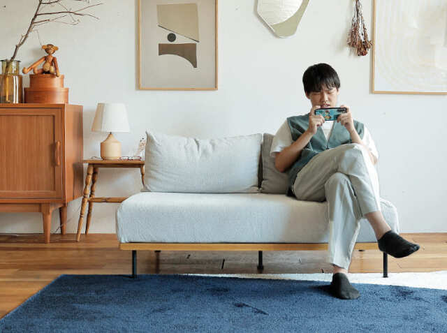 全体的に高さを抑えているため圧迫感を与えません。ダイニングとリビングの間など、お部屋の中心にソファを置くレイアウトでも、繋がりを持たせながら空間を仕切ることができるので、コミュニケーションも取りやすくなります。