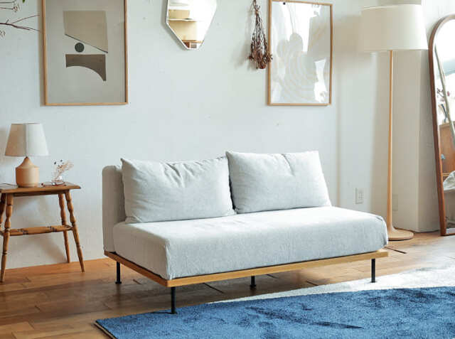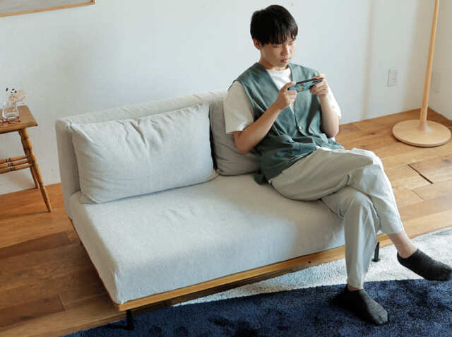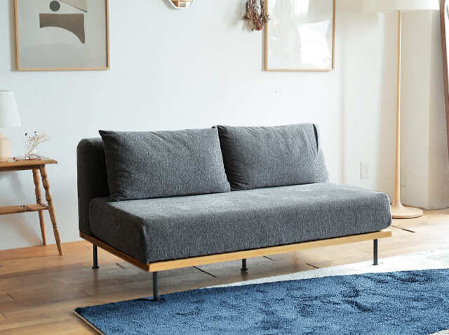 座面幅は130cmとなっていますので、大人が2人で座ってちょうどいいさいずとなっています。また肘置きのないアームレスタイプとなっていますので、見た目にもすっきりとした印象で、あまり広さのないスペースにも気軽に置けるのがいいところ。ひじ掛けがないぶん、立ったり座ったりといった動作もしやすいため、ストレスなく立ち座りができるのはポイントです。