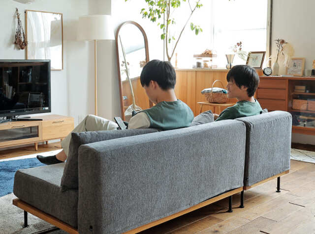 アドレスのモートシリーズは、2人掛けタイプの「ワイド」(本商品)と、座面が前に長く、足を伸ばして座れるカウチソファタイプの「ロング」の2サイズ展開です。単体で使う以外にも、組み合わせてカウチソファーとしても使え、生活スタイルやスペースに合わせたレイアウトが可能です。テレビを見ながらゆったりとくつろぐリビングシーンにぴったりのインテリアですよ♪