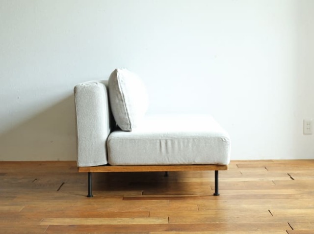 同シリーズのカウチソファタイプの「ロング」と合わせて使えば、統一感のあるナチュラルリビングの完成ですね。ただ同系色のカラーでインテリアを揃えると無難にまとまりますが、単調になりすぎることもありますので、天然木を使った収納やポスターなどの小物に差し色を取り入れると、程よいメリハリが生まれて落ち着きのあるおしゃれな空間になりますよ。