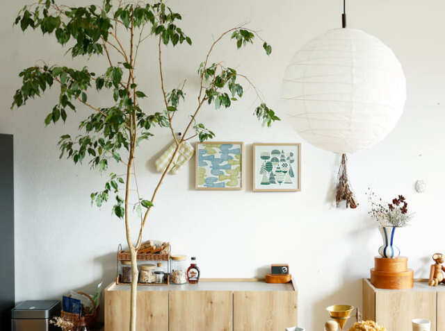 壁掛け以外にも、キャビネットなどの収納棚の上に置くだけでも空間をおしゃれに演出してくれますよ。