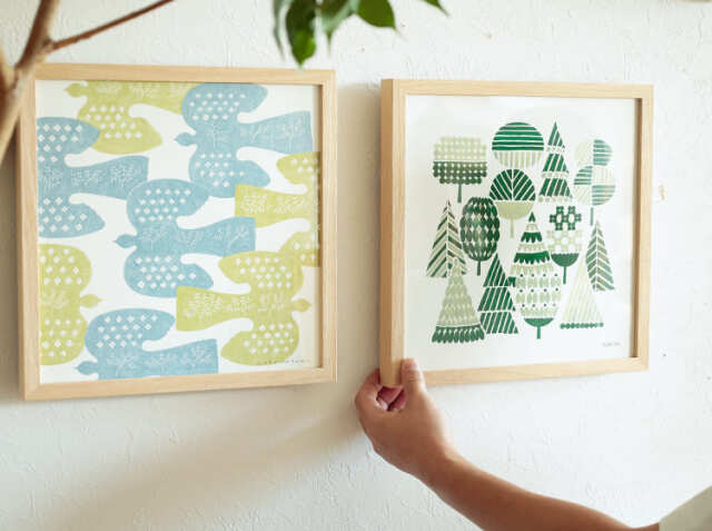 リビングや寝室、ダイニングなどの壁(ウォール)スペースはお部屋の中でも面積が多く、何も飾らなければ意外と無機質ぽくなってしまいます。ナチュラルな天然木のフレームとの組み合わせはお部屋を優しい雰囲気に包み込んでくれますね。