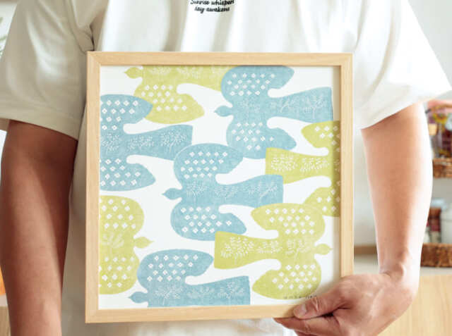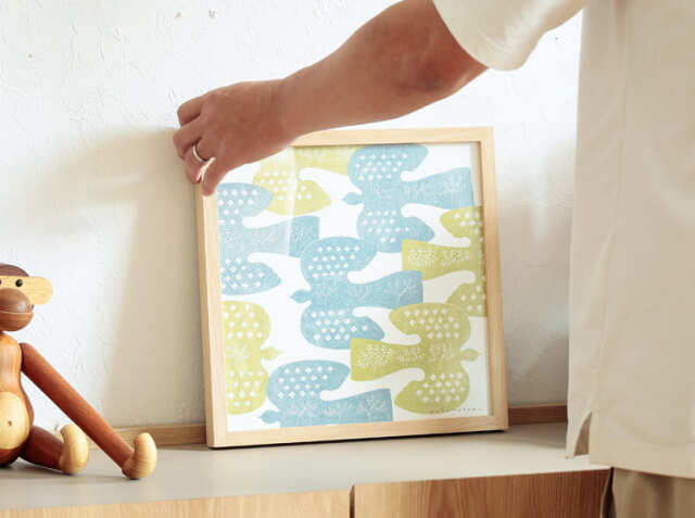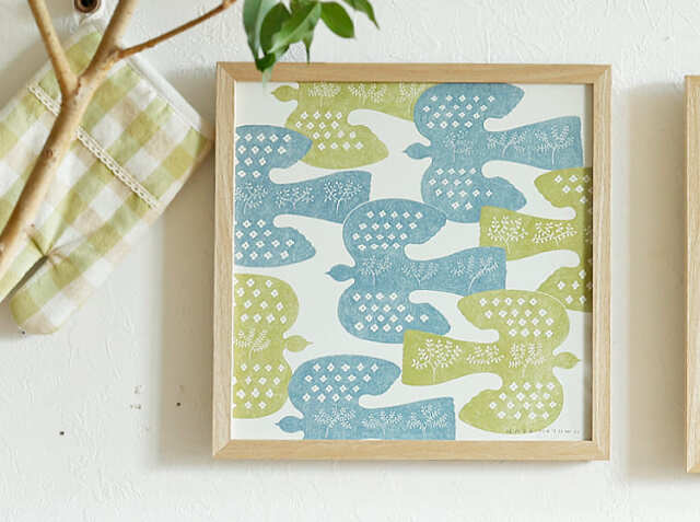 暮らしにやさしく馴染んでいくような青山佳世デザインのアートポスター、FOLK BIRDS(フォルクバーズ)。フレームは幅32.3cm×高さ32.3cm×奥行き2.9cm。ポスターサイズは、幅30cm×高さ30cm。1枚だけで飾っても複数枚並べて飾っても、お気に入りの一枚をお部屋にプラスして、身近にアートを感じてみませんか?