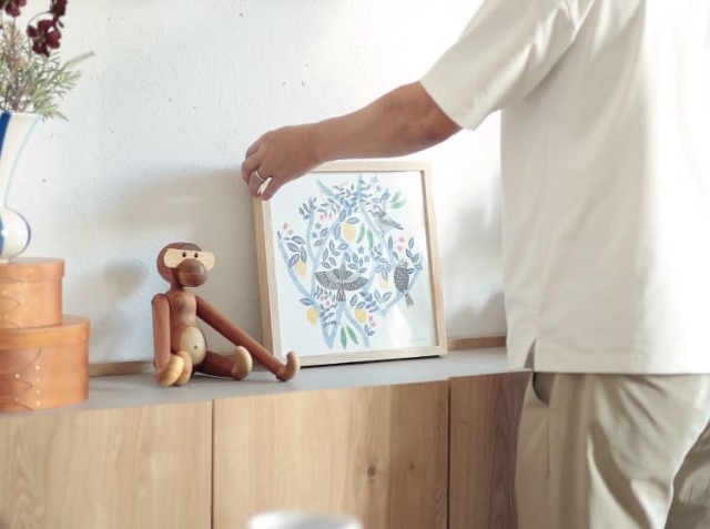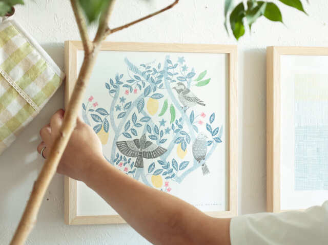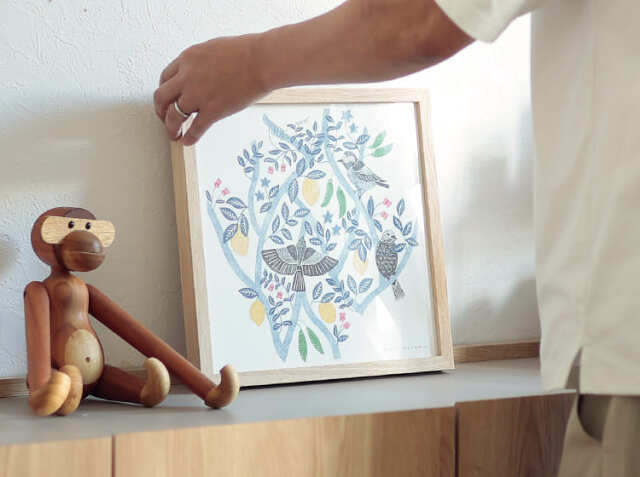 リビングや寝室、ダイニングなどの壁(ウォール)スペースはお部屋の中でも面積が多く、何も飾らなければ意外と無機質ぽくなってしまいます。ナチュラルな天然木のフレームとの組み合わせはお部屋を優しい雰囲気に包み込んでくれますね。