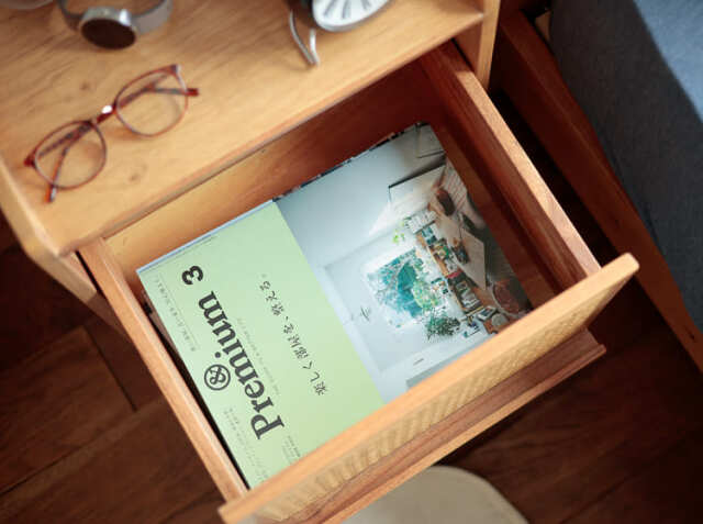 またちょっとした小物を収納できる引き出しがついていますので、手の届く距離に置いておきたい筆記用具やリモコンなどを収納すればさらに便利さはアップですね。