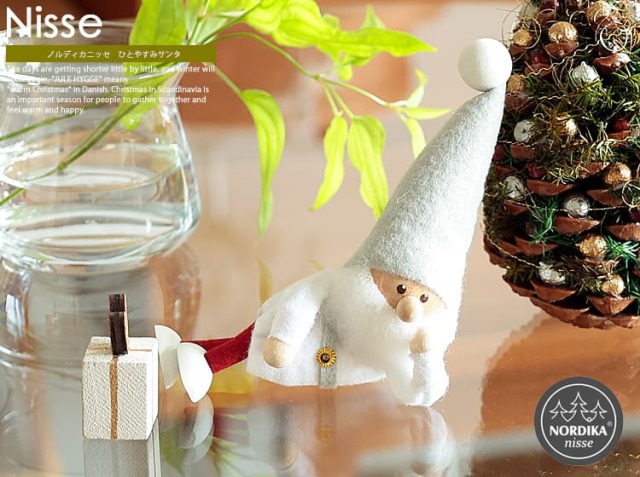 おちゃめなポーズ、あどけない表情、もこもこの帽子にふわふわのヒゲなど。本格的なクリスマスの飾りつけをしなくても、「ニッセ」がちょこんとお部屋にいるだけで、季節を感じられて優しい気持ちになりますよ。