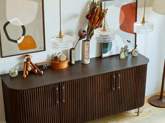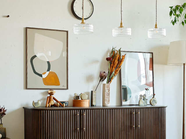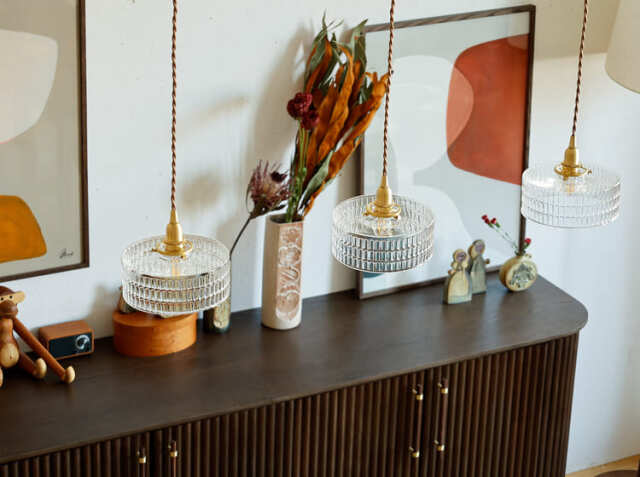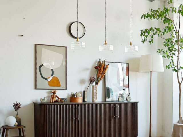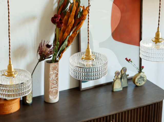 ガラス素材のペンダントライトからは、優しく光が漏れ、あたりをふんわり照らしてくれます。広範囲をやさしく照らすシェードですので、手元だけを明るくしたい人よりも、空間全体をおしゃれに演出したい人にぴったり♪