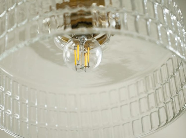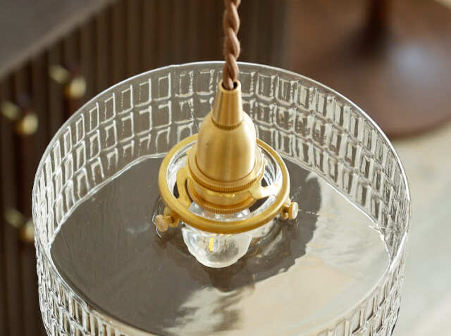 またガラスシェードは、近づいて見ても気泡が少なく透明感があり、クオリティーの高さを感じさせる作りとなっています。そのため電球から放たれる光が温かみを感じる空間を創りだしてくれますよ。