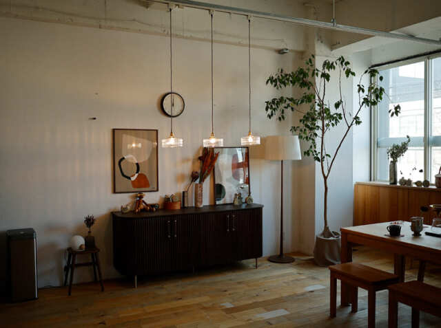 温かみある光が、カフェのように落ち着きある上質な空気感を演出してくれて、 ただ照らすだけではなく、空間を飾るという感覚でお使いいただけるアート性の高い照明となっています。