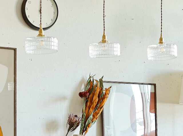 レトロ感のある真鍮のソケットに、円形ガラスシェードを取り付けた、アンティーク風のペンダントライト。キッチン・リビング・ダイニングのテーブルの上に飾るだけでまるでカフェ風のインテリアに。全体的に明るく清潔感のあるデザインでまとまっていますので、リビングやダイニング、カウンターなどにピッタリ♪小ぶりなサイズですので、複数灯並べてお使いになると、より可愛くオシャレにコーディネートできますよ。