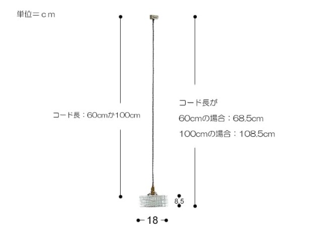 | サイズ | シェード:直径 18cm × 高さ 8.5cm(コード長:60cmor100cm) |