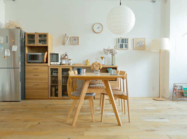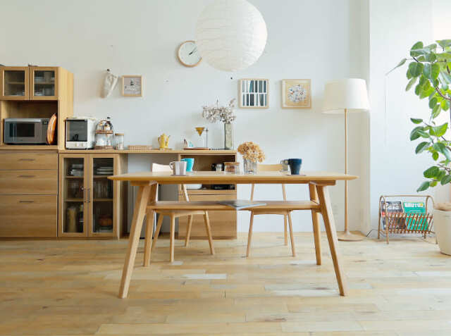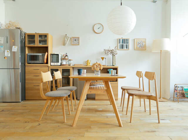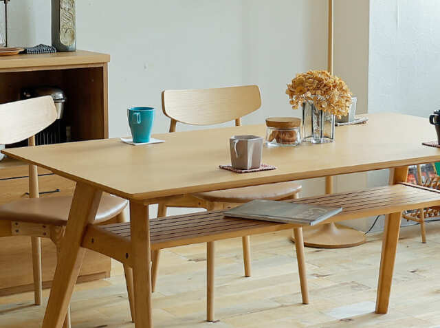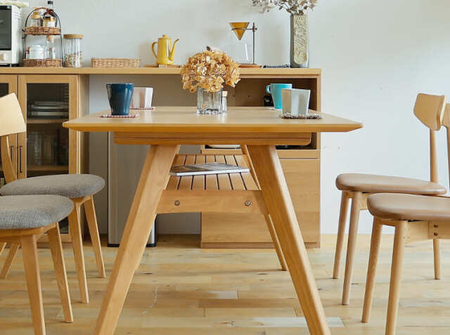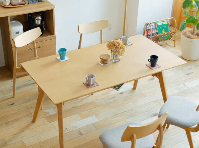 家族やお友だちが集まる食卓。会話をしながら、お食事をしたり、珈琲を飲んだりと楽しく過ごす場所を、天然木の優しい雰囲気が漂うダイニングテーブルで北欧テイストの空間をつくりませんか?