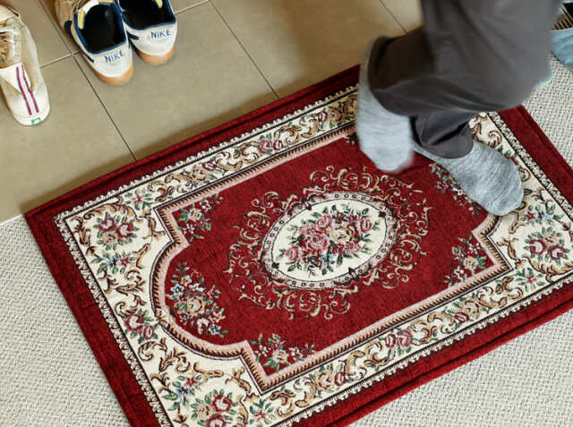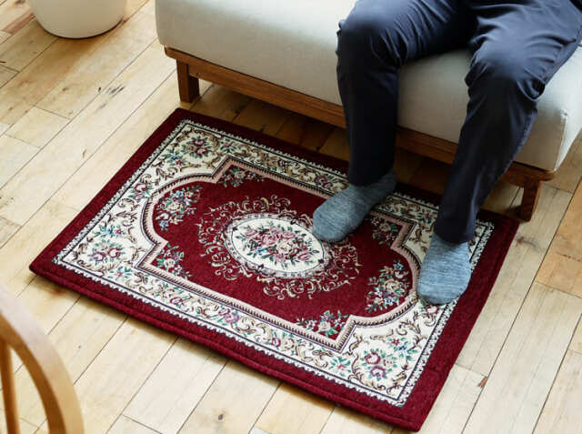 ポリエステル80%、綿20%の表面はサラサラとして、素足で歩くと気持ちいいですよ。玄関だけではなく、キッチンや寝室、洗面所、ソファー前などでも活躍しそうですね♪
