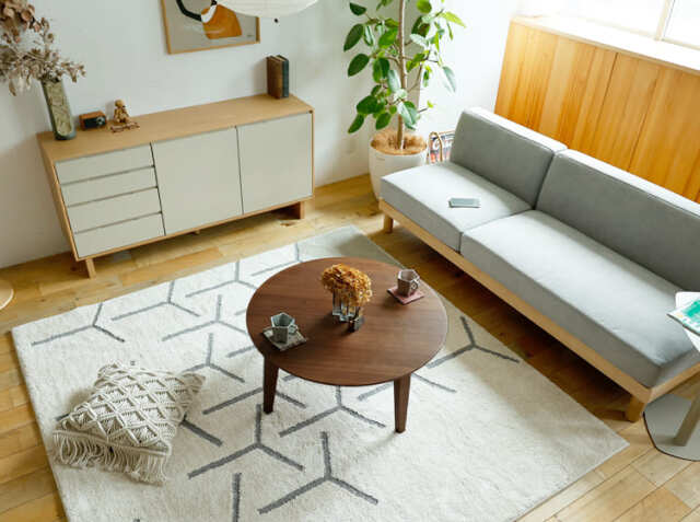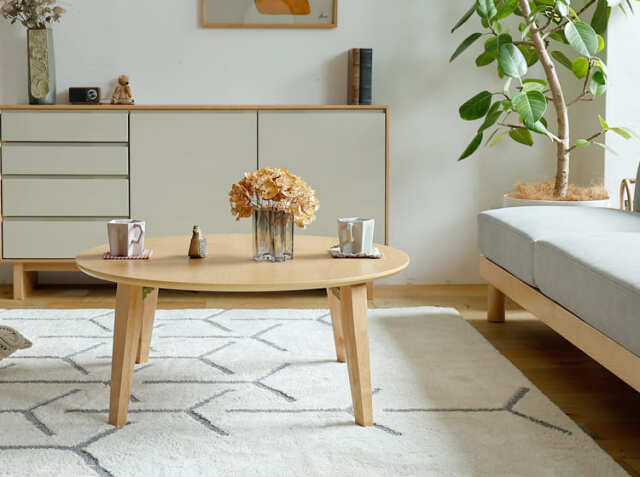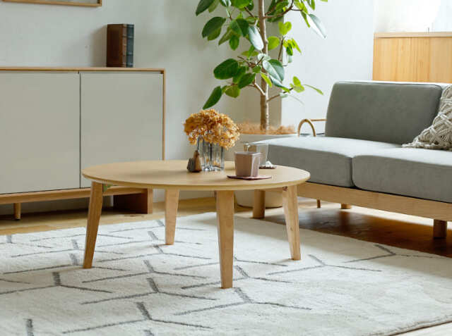ちょっとした作業をしたいときや来客時にテーブルが足りないときなど、いろいろな用途で活躍してくれるのがセンターテーブルです。ナチュラルな風合いのテーブルは、畳のお部屋はもちろんのこと、フローリングやカーペットの洋室にも似合いそうですね。