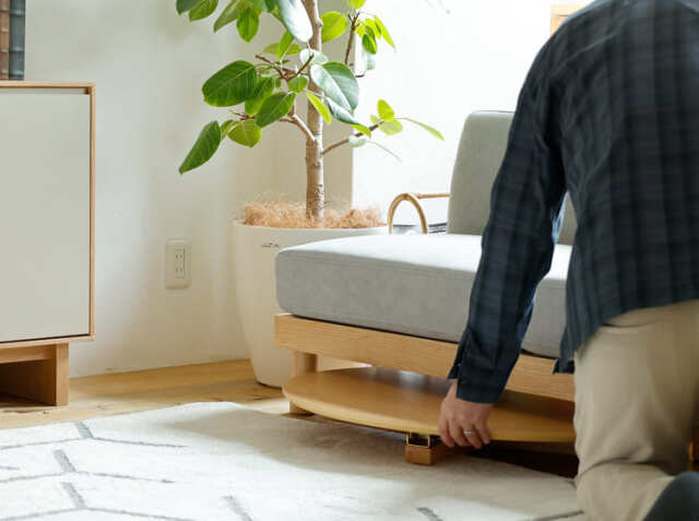 脚部の裏には、床を傷つけないようにフェルト材が付いています。