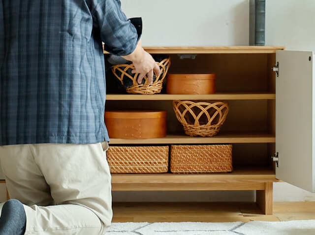 家にいる時間の大半を過ごすリビング。だからこそ、便利に使えておシャレに見えるサイドボードは必須アイテムです。ちょっとだけでも空いた場所に置いて、お部屋の中に収納と優雅さをプラスしてみませんか?女性の方でもストレスなくご使用いただける高さは70cm。奥行きも圧迫感を感じさせない35cm。すっきりとシンプルなデザインは、置く場所を選ばず、お家の幅広いシーンで活躍してくれますよ。