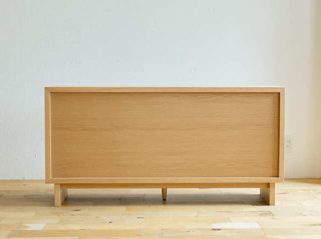 こちらのサイドボードの高さは70cmに仕上げています。高さを抑えた家具をお部屋に配置することで、圧迫感を軽減することができすっきりとした印象にしてくれる効果もありますよ。