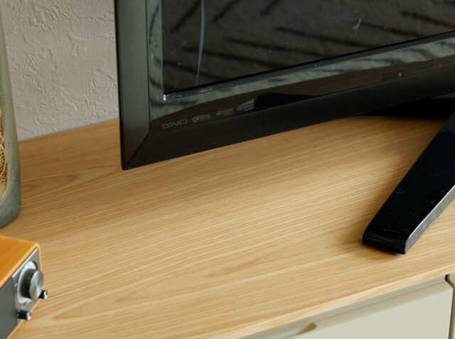 奥行きは40cmとスリムな設計にしていますので、お部屋に置いた時の圧迫感を軽減してくれます。また天板はポプラの木目がナチュラルさを感じさせてくれますのでお気に入りの雑貨などを置いてディスプレイを楽しむこともできますよ♪