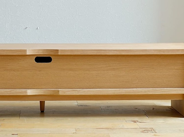 引出しには、外観のデザインを損ねないように掘り込み型の持ち手を採用しています。