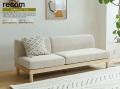 recom(レコム)のデザインの方向性は基本「ナチュラル」。ナチュラルな印象の天然木を脚部やフレームなどに使うことで温かみを感じるデザインに仕上げています。そこにベージュやグレーの落ち着いた色味と質感のファブリック生地のカバーを融合させることで、ナチュラルの中にモダンな雰囲気を感じるデザインに仕上げています。