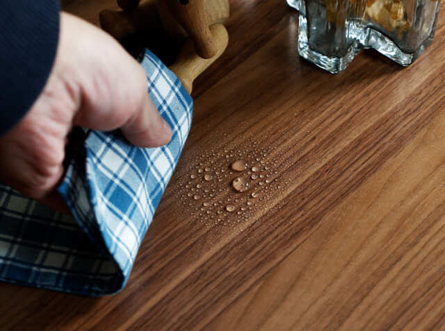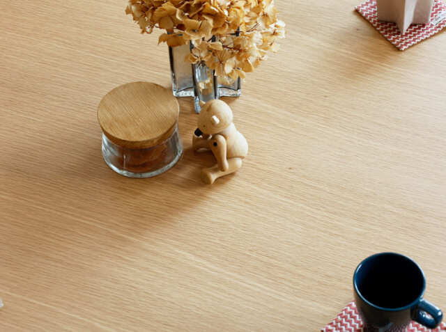 天板には、耐水性に優れたウレタン塗装を施していますので、飲みものなどをこぼした時でもサッと拭き取れて掃除がラクラクですよ。