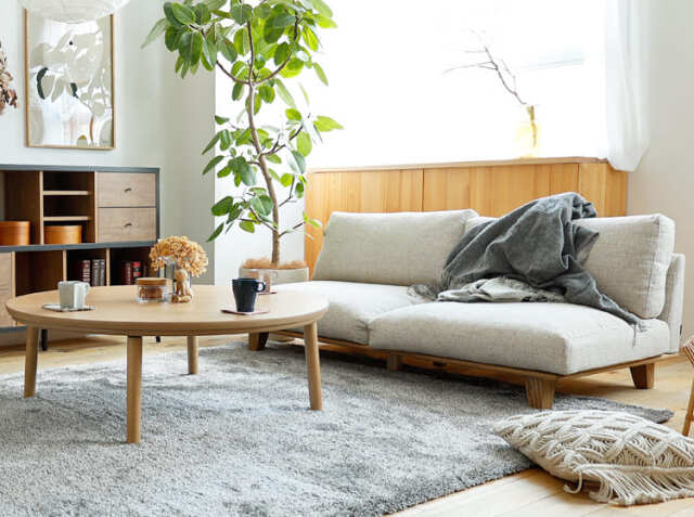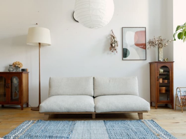 | 素材 | 内部構造:ウレタンフォーム、フェザー、スピニングスポンジ 張地:ファブリック 脚部・フレーム:アッシュ無垢材(オイル塗装) |