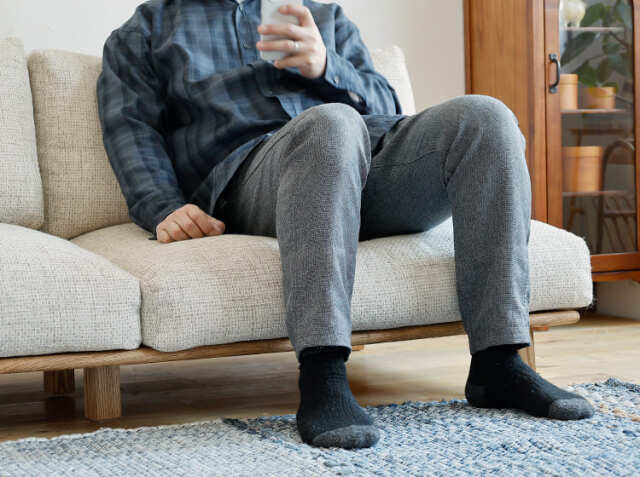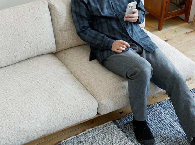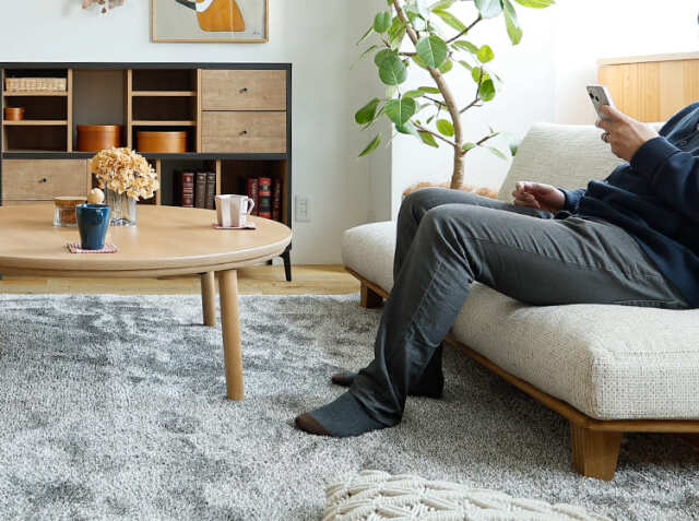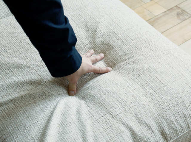 座ったときに感じる、じんわりと身体全体を包み込む感じ。フカフカでもなく硬すぎることもない“コシ”のある弾力を生み出しているのは、フェザーとウレタン、スピニングスポンジをたっぷりと詰め込んでいるから。フェザーだけだとフカフカになり過ぎるために、ウレタンとスピニングスポンジを混合することで柔らかすぎない“コシ”のある座り心地で、じんわりと包み込む柔らかさを堪能ですることができます。柔らかすぎず、硬すぎず、適度な弾力で、リビングでの時間が楽しくなりそうですね。