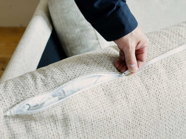 座クッションと背クッションカバーは取り外せるカバーリング仕様。カバーリング仕様のため、うっかり汚してしまった場合もカバーを外してドライクリーニングが可能なのも嬉しいポイントです。