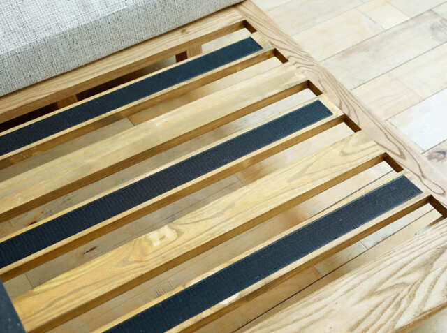 座クッションを置くフレームは、風通しの良い「格子状」タイプを採用しています。湿気がたまりにくく清潔に家具を保つことができますよ。また座クッションがズレないようにマジックテープで固定する仕様となっています。