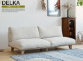 DELKA(デルカ)のデザインの方向性は基本「ナチュラル」。ナチュラルな印象の天然木を脚部やフレームなどに使うことで温かみを感じるデザインに仕上げています。そこにアイボリーの落ち着いた色味と質感のファブリック生地のカバーを融合させることで、ナチュラルの中にモダンな雰囲気を感じるデザインに仕上げています。