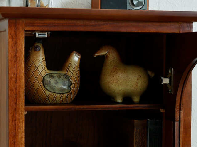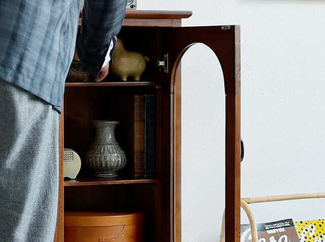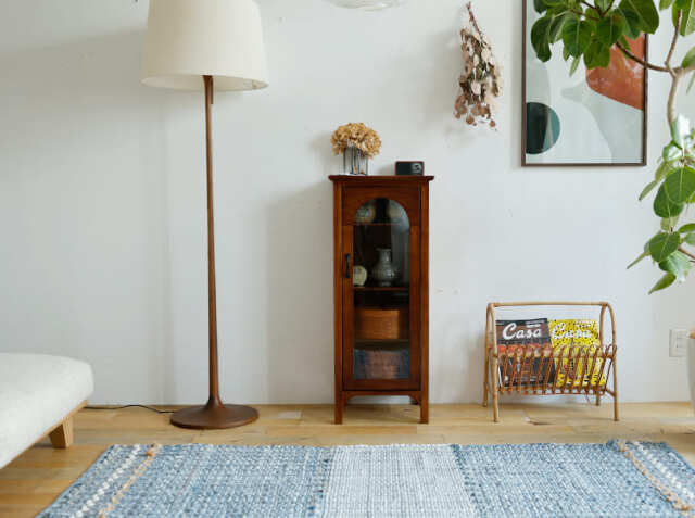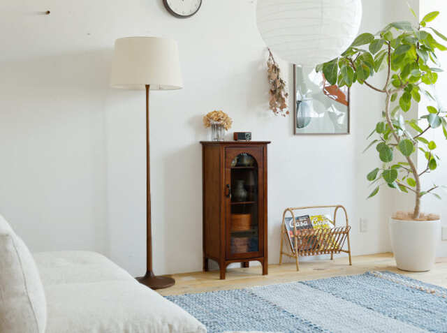 ゆっくりとくつろぐリビングには、細々とした文房具類や本など様々な日用品が集まりますので、いつも綺麗にしておきたいですよね。そんな時におすすめなのが、インテリアと収納を兼ね備えたキャビネット。お部屋に機能的なキャビネットが一つあれば、身の回りの物を一か所にすっきりとまとめることができて便利。またお気に入りのアンティークアイテムなどを天板に飾ったりすることでお部屋の中での“好きな場所”ができますよ♪