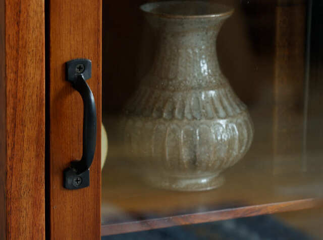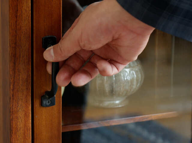 本体:天然木ミンディー無垢材(ラッカー塗装) 取っ手:アイアン ガラス:3mm強化ガラス |