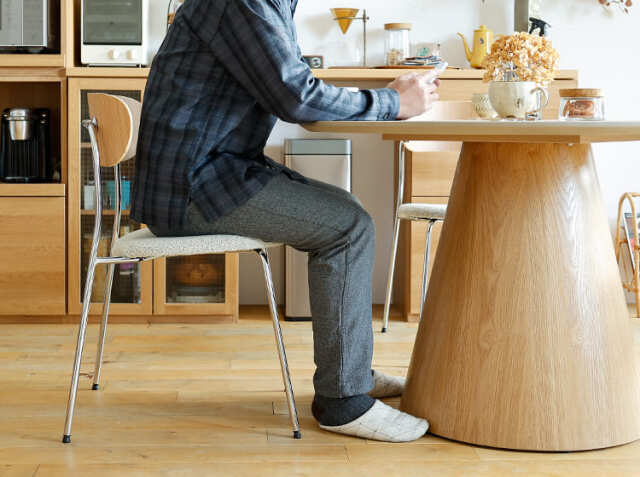 また小さなお子さまがおられるご家庭ではお気づきかもしれませんが、ダイニングテーブルの天板部分は子供の顔の高さになってしまいがち。円形のダイニングテーブルは角がない分安心してご使用いただけるのもポイントですね。