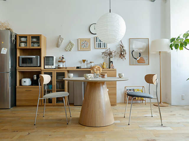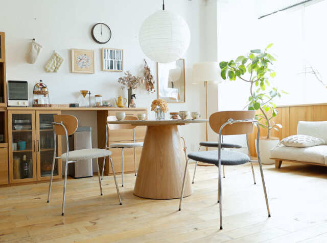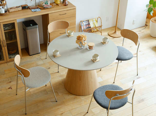 家族やお友だちが集まる食卓。会話をしながら、お食事をしたり、珈琲を飲んだりと楽しく過ごす場所を、優しい雰囲気が漂う円形のダイニングテーブルで北欧テイストの空間をつくりませんか?