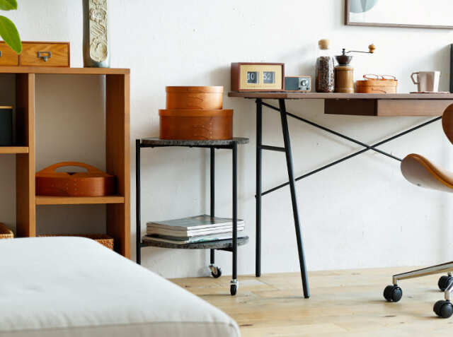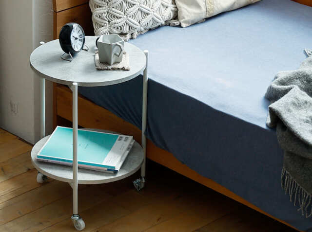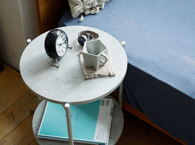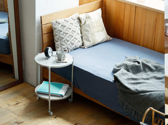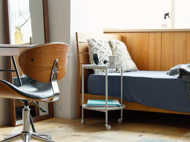 眠る前の読書が毎日の楽しみという方も多いのではないでしょうか。眠気がやって来たら、ベッドに入ったまま本や眼鏡をベッド横に置いたサイドテーブルに。眠気がじゃまされることなく、ゆったりとした気持ちで眠りにつけます。置き場所の定位置にもなるので、部屋の中で迷子になることもありませんね。